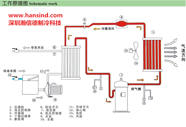 三、風冷式冰水機的工作原理與工作原理圖,約克冰水機原理,瀚信德為你提供高清大圖,并提供最專業,簡潔實用,通俗易懂的工作原理分析!