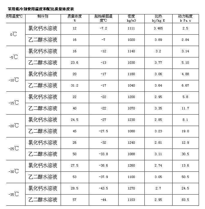 下面是各種冰水機用低溫載冷劑的配置表,相關文章請到