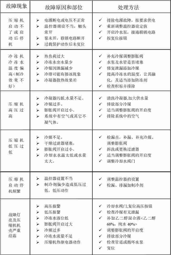 關鍵詞:工業(yè)冷水機組常見故障原因與排除速查表