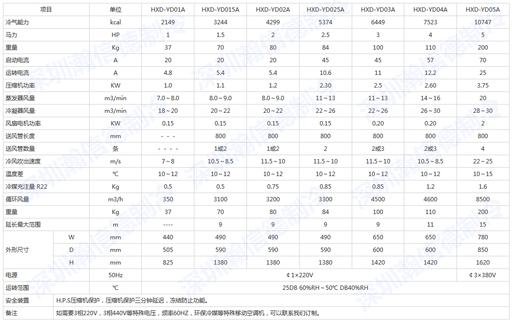 瀚信德品牌高品質(zhì)工業(yè)移動空調(diào)機技術參數(shù)